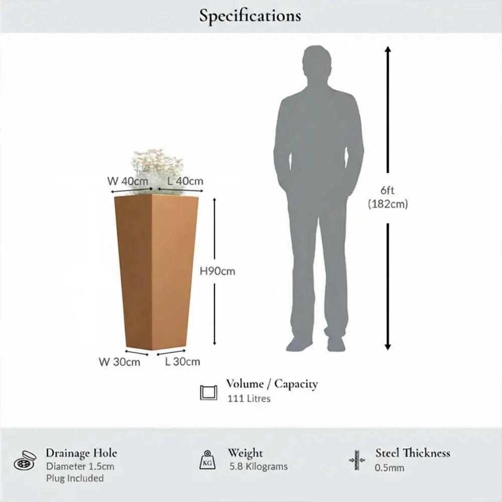 90cm Zinc Galvanised Copper Finish Tall Tapered Square Planter