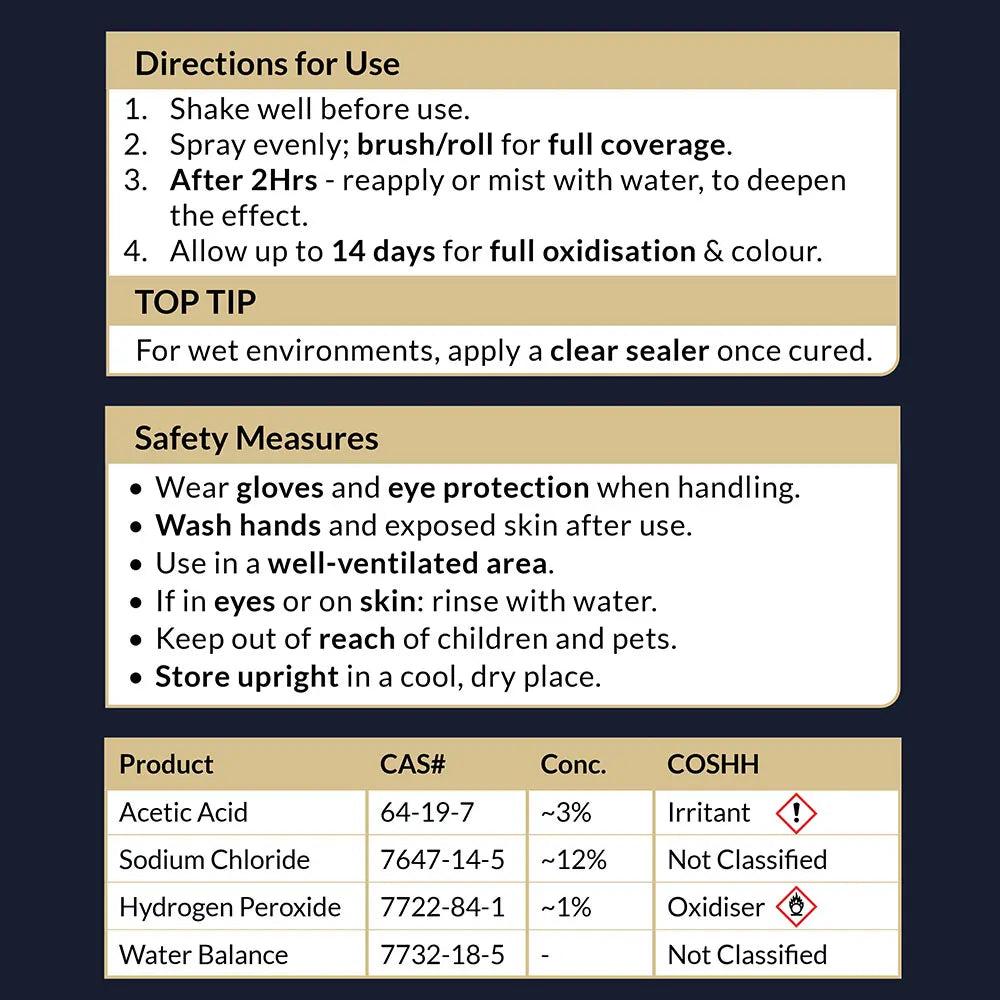 This non-hazardous solution delivers a high quality rust patina while eliminating the usual risks and mess associated with traditional methods.